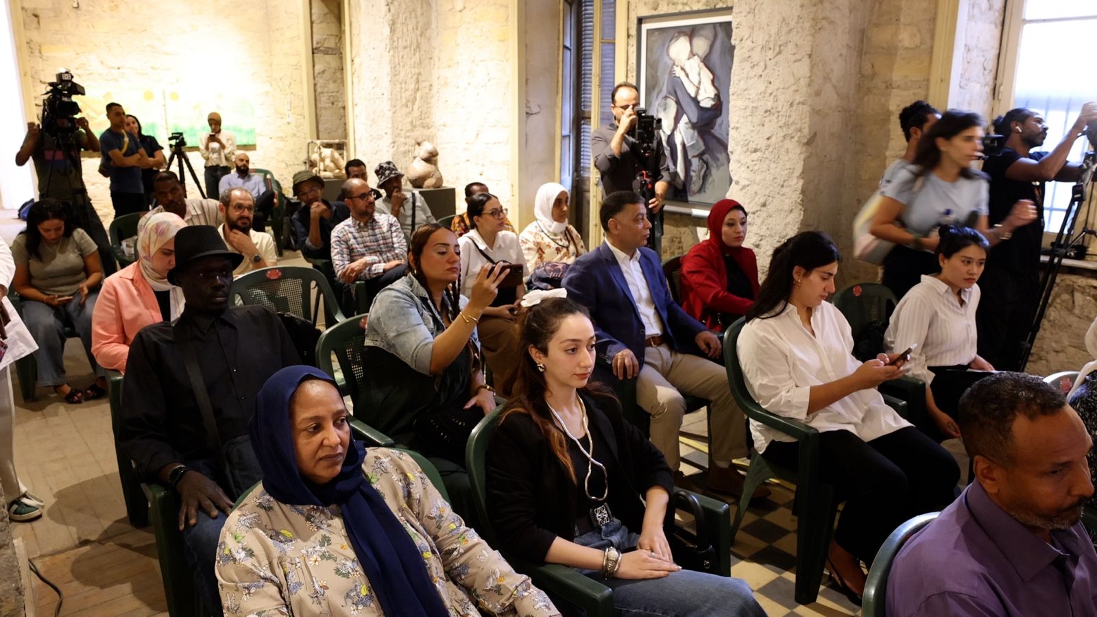 The session discussed the importance of creating a space to hear voices that deserve to be heard, such as refugee artists. It also reviewed the artworks and handicrafts that 20 Sudanese artists participated in during the “Women Tell Their Story” and “Echoes” exhibitions within the fourth edition of the “Cairo International Arts District” (CIAD) exhibition, which is organized by “CultureFinder-Art d’Egypte” from October 10 to 30 in three main locations in Downtown Cairo: Radio Cinema, El Masnaa, and Access Art Space. “We at Art d’Egypte believe that art should be available to everyone, and that it is the means through which society and its issues can be expressed, and others can be introduced to identity and culture,” said Nadine Abdel Ghaffar, founder of “CultureFinder-Art d’Egypte.” She added that the ties between Egypt and Sudan are strong and deep-rooted in history. Amidst the crises it is going through, the participation of Sudanese artists in the “Cairo International Arts District”, especially women, represents an honor and appreciation for the strength and resilience of Sudanese women, and highlights their courage and sacrifices amidst the chaos of war.