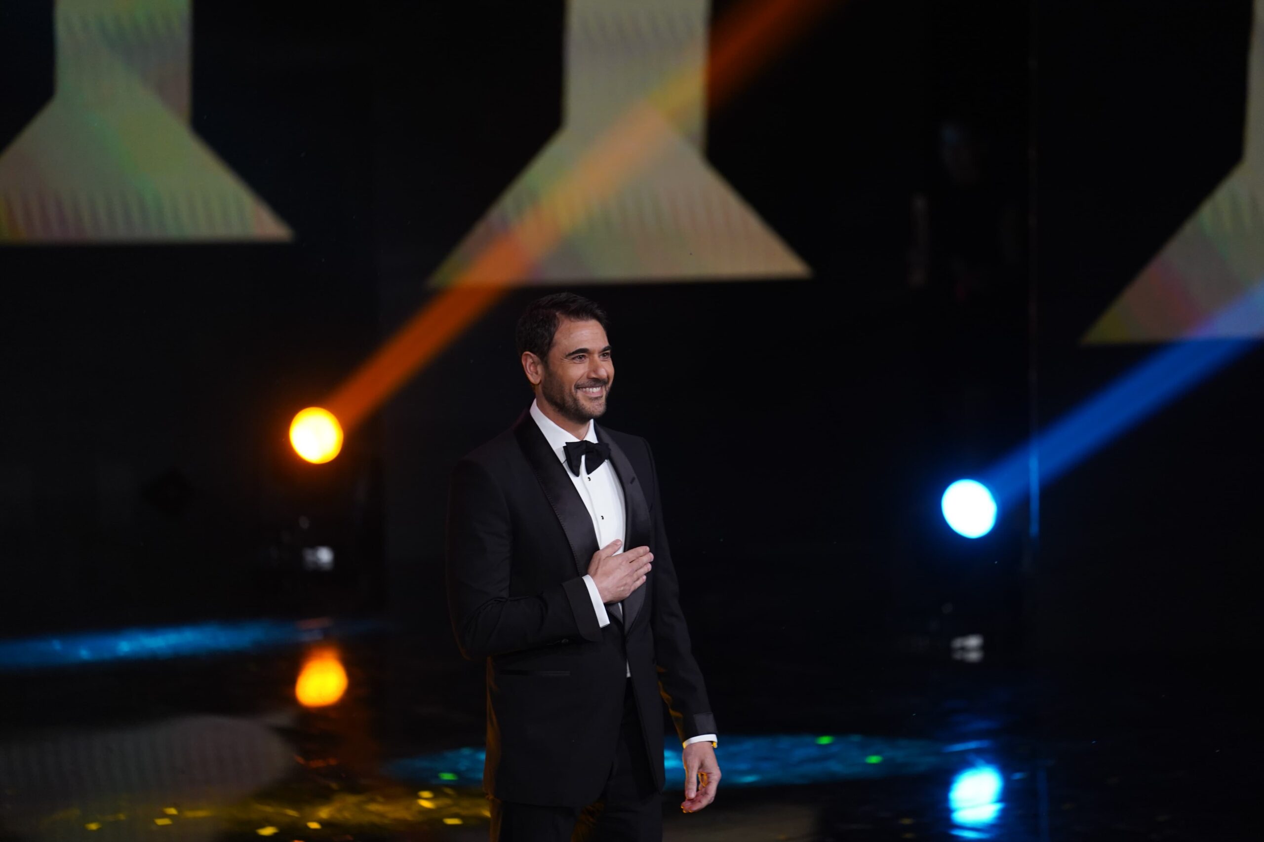 The opening ceremony began with a Palestinian show in solidarity with the Palestinian cause and the stage was covered with the Palestinian shawl, and then the atmosphere was ignited with the performance of the song “Palestinian”, and at the end of the show the festival president, the great star Hussein Fahmy, appeared in the middle of the Palestinian band and said that they are all from Gaza and applauded them and thanked him.