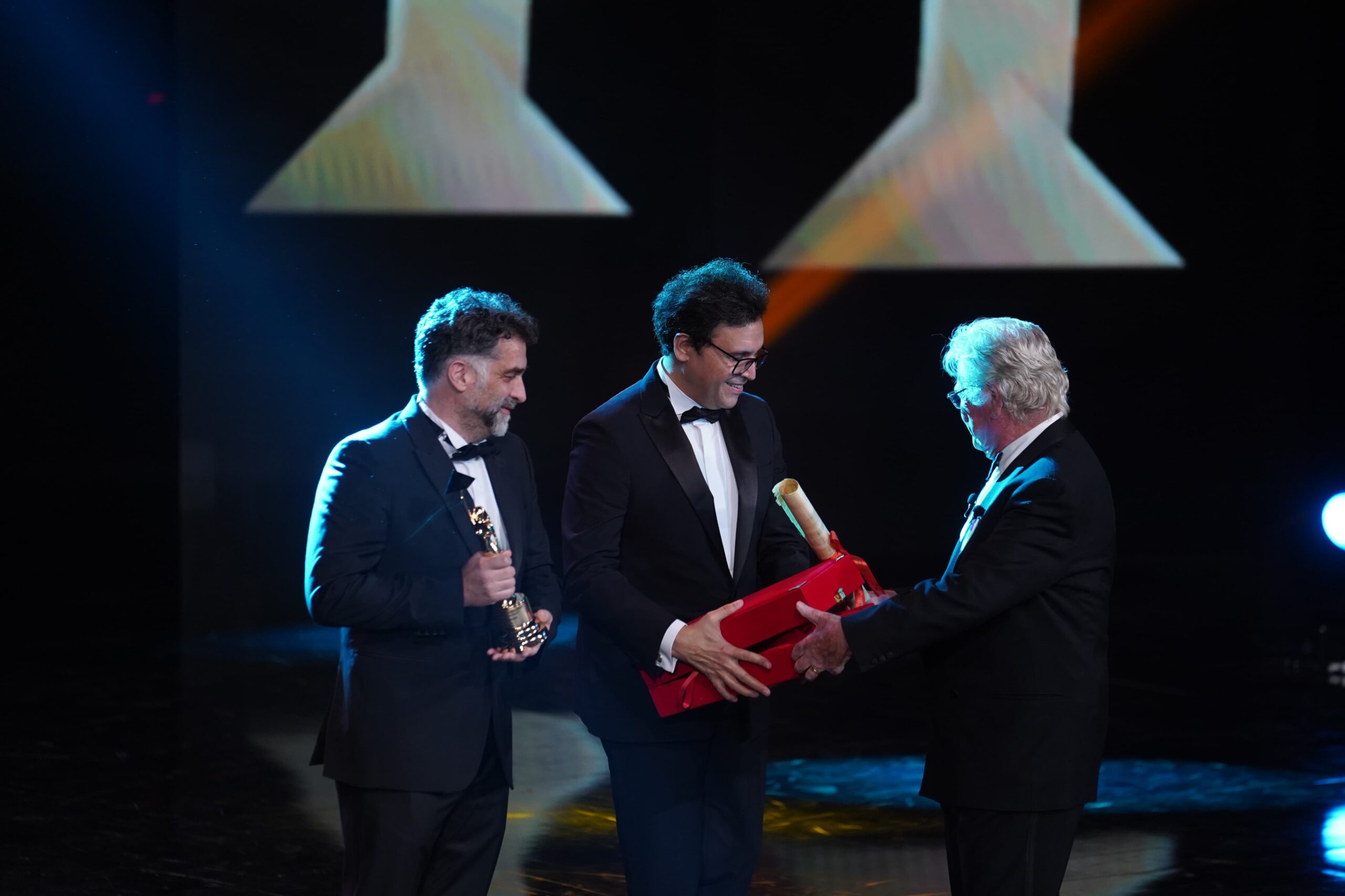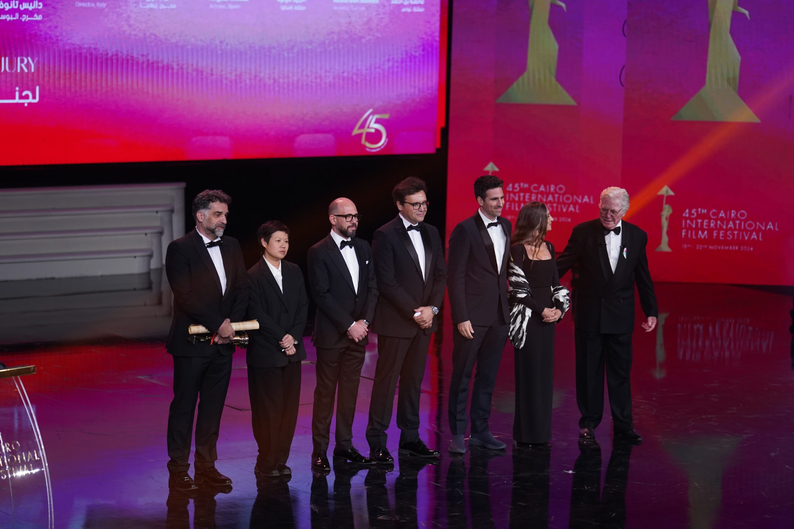 Afterwards, director Youssef Nasrallah was honored with the Golden Pyramid Lifetime Achievement Award, in appreciation of what he has presented throughout his rich artistic career. He said: “I thank Hussein Fahmy and the minister for nominating me for the award. This year, Egyptian cinema is better in terms of revenues and participation in international festivals. We are the ploughmen of cinema because it is our conscience. I extend my greetings to my Palestinian filmmaker colleagues. At the end of his speech, he thanked cinema.”