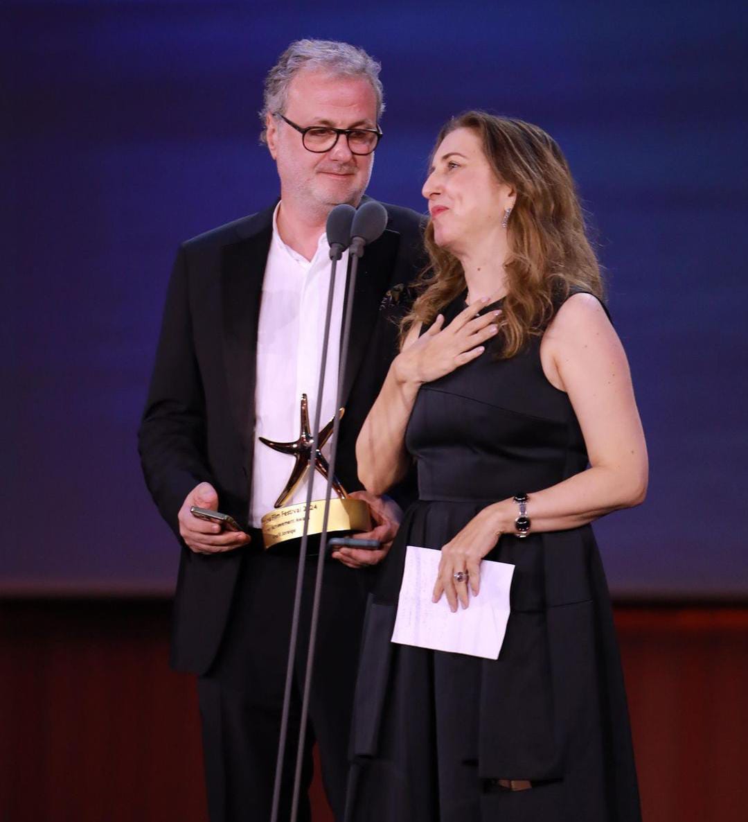 Events of the seventh edition of the El Gouna Film Festival concluded Friday evening, in an exceptional ceremony that was dominated by conflicting feelings after the departure of the stars Hassan Youssef and Mustafa Fahmy, and witnessed the absence of a number of stars who passed away before the closing ceremony for various reasons, and the appearance of married couples for the first time.
