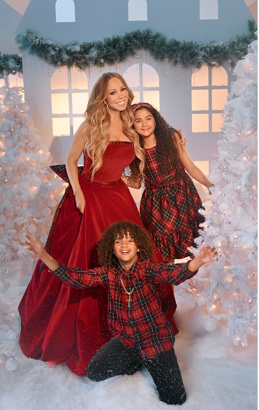 Carey is joined by her kids Moroccan and Monroe in the campaign, marking the first time the three of them have posed for together for a brand partnership. The accompanying photos and video feature Carey and the twins decked out in The Children’s Place new holiday collection, which includes everything from graphic tees, to cozy sweats and matching pajamas for the whole family.